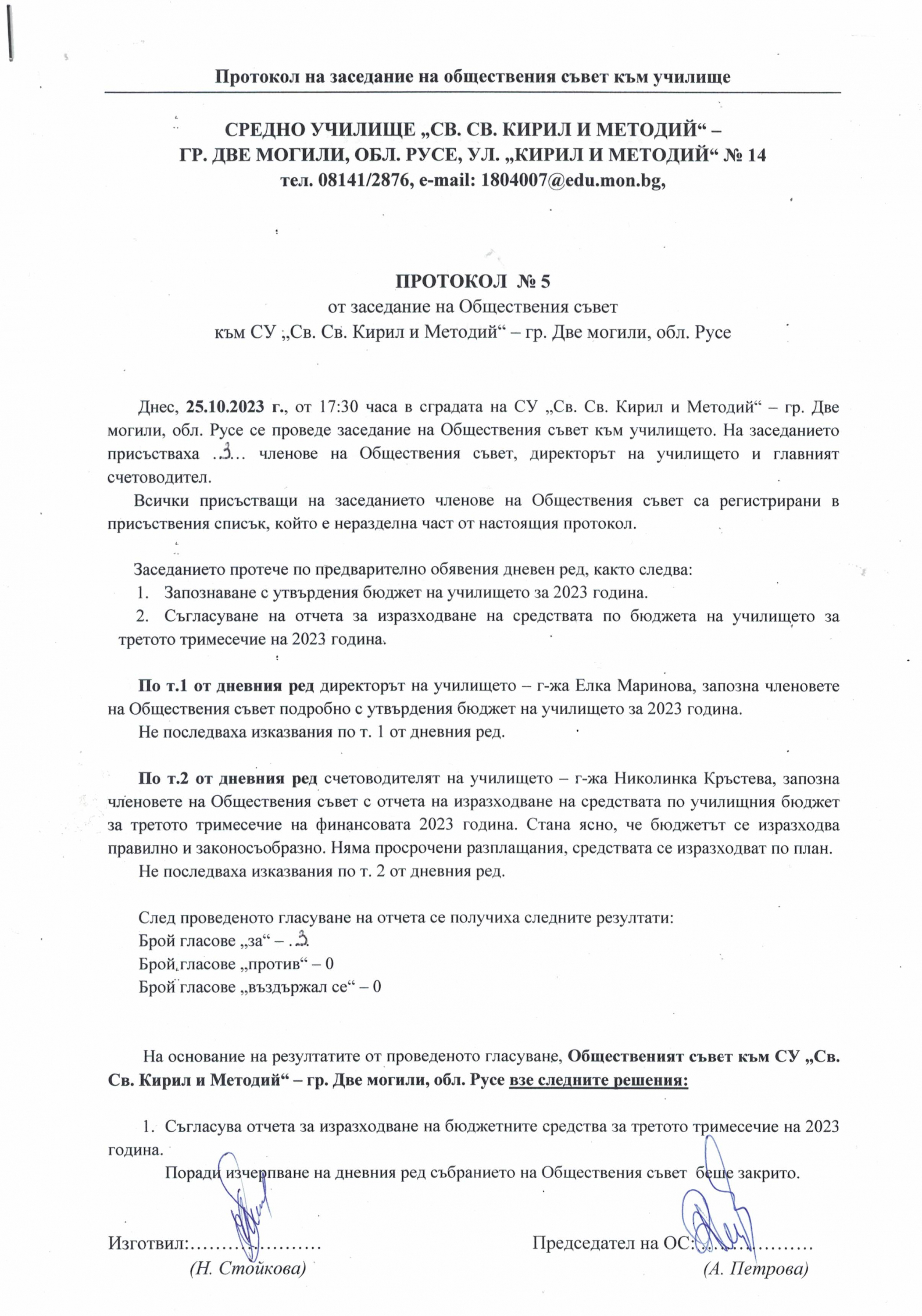Протокол № 5/ 25.10.2023 г.